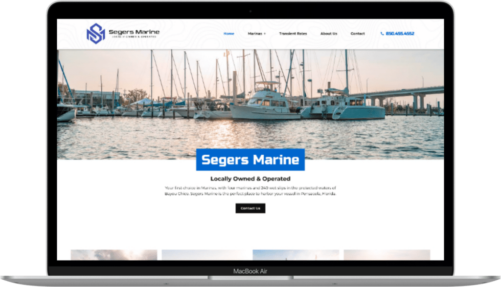 This clean and modern website design highlights the beautiful scenery surrounding the four marinas Segers Marine operates on Bayou Chico. Custom maps, easily understood rate tables, and user-friendly navigation make for smooth sailing.